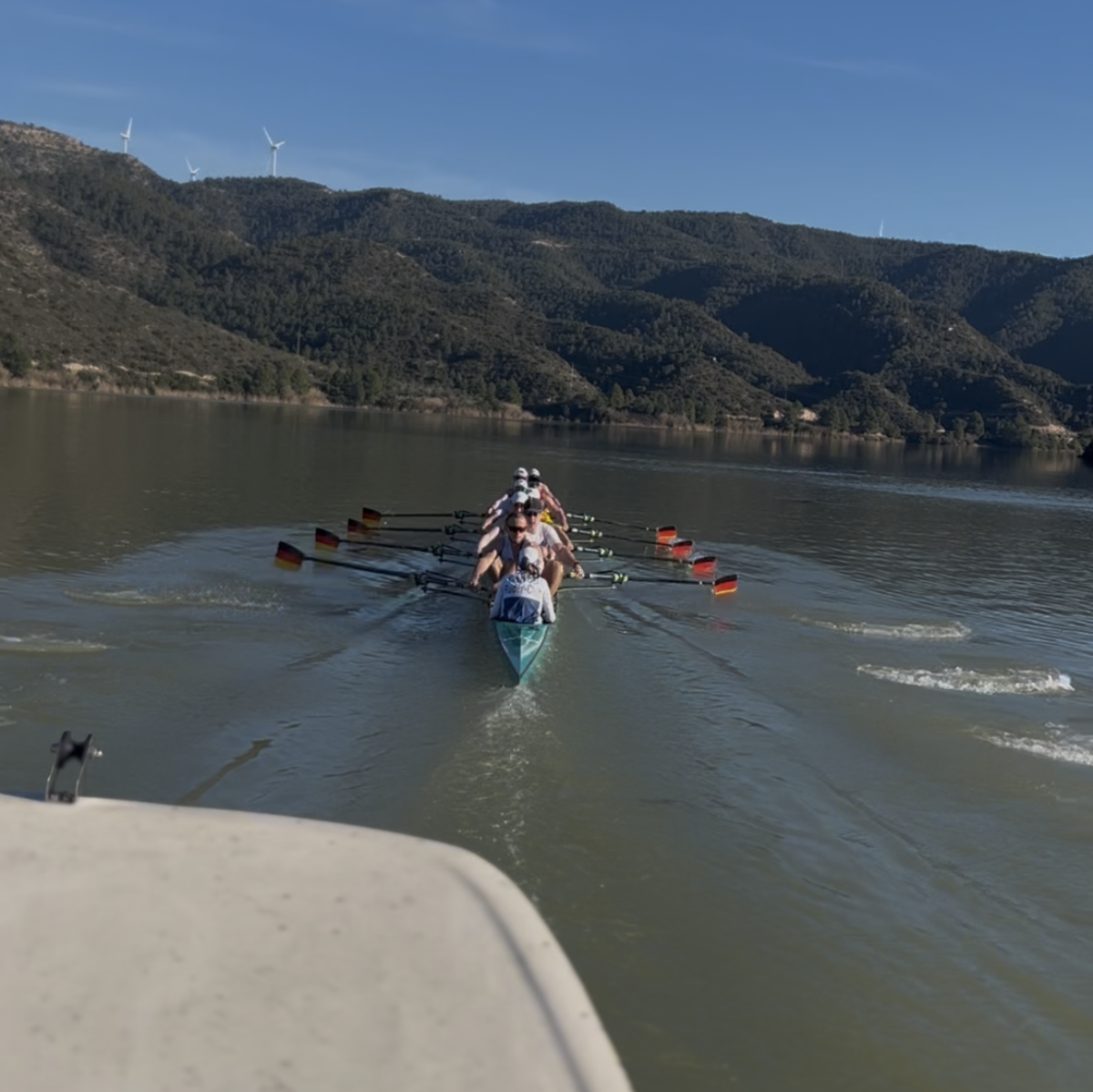 Im Zeitraum vom 14. bis zum 28. Februar war ich (Julius Watzka) mit der U23-Nationalmannschaft im Trainingslager in Mequinenza. Dieses Trainingslager diente in erster Linie dazu, Groß- und Mittelboote zu fahren und nach einem langen, kalten Winter Abwechslung in den Trainingsalltag zu bringen. In Mequinenza (ca. zwei Autostunden westlich von Barcelona) hatten wir optimale Trainingsbedingungen: morgens meist etwas kühler mit rund 10 Grad und leichtem Nebel, dafür nachmittags fast immer 20 Grad, strahlenden Sonnenschein und glattes Wasser – also perfekte Voraussetzungen, um sich auf die kommende Saison vorzubereiten.
